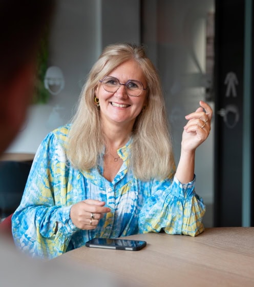 Cindy krijgt energie van veel contact met onze medewerkers. Van intake tot voorstellen, maar vooral de begeleiding als iemand eenmaal begonnen is.
